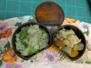 2026年3月9日 / 最終更新日時 : 2026年3月7日 kanri お知らせ赤木かん子の今日の美味しいもの😁 179今日のお弁当は、そら豆としらす入りの混ぜご飯です。炊いたあと混ぜたやつ。 毎日そら豆尽くしで幸せ (笑) おかずは鶏の煮物と大根、人参、きのこの煮物、と茶色いご飯です。2026/03/06